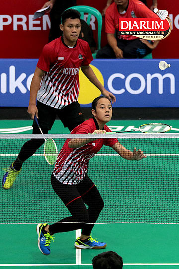 Lukhi Apri Nugroho/Ririn Amelia (Berkat Abadi/PB Djarum Kudus) Mengembalikan Shuttlecock