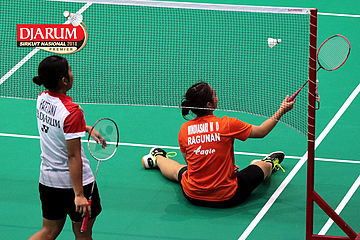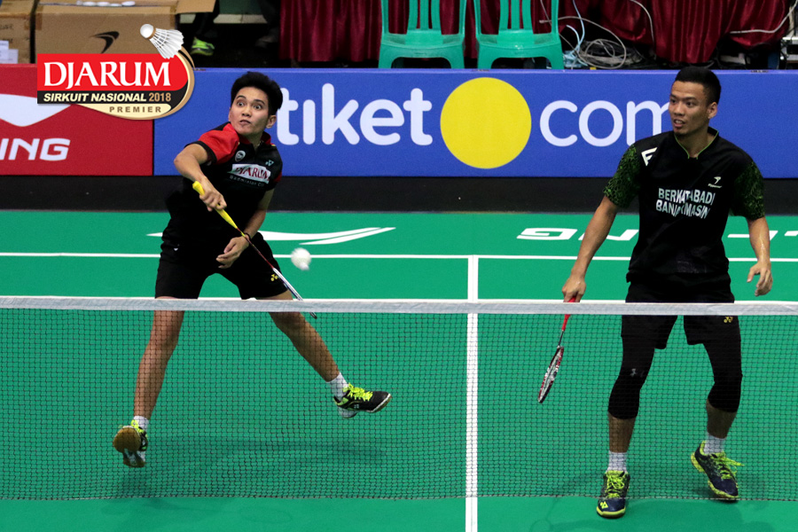 Rahmat Hidayat/Gity Gabriel Rambing (PB Djarum Kudus) Mengembalikan Shuttlecock