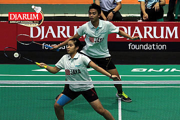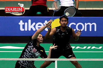 Lukhi Apri Nugroho/Ririn Amelia (Berkat Abadi/PB Djarum Kudus) Melepaskan Serangan