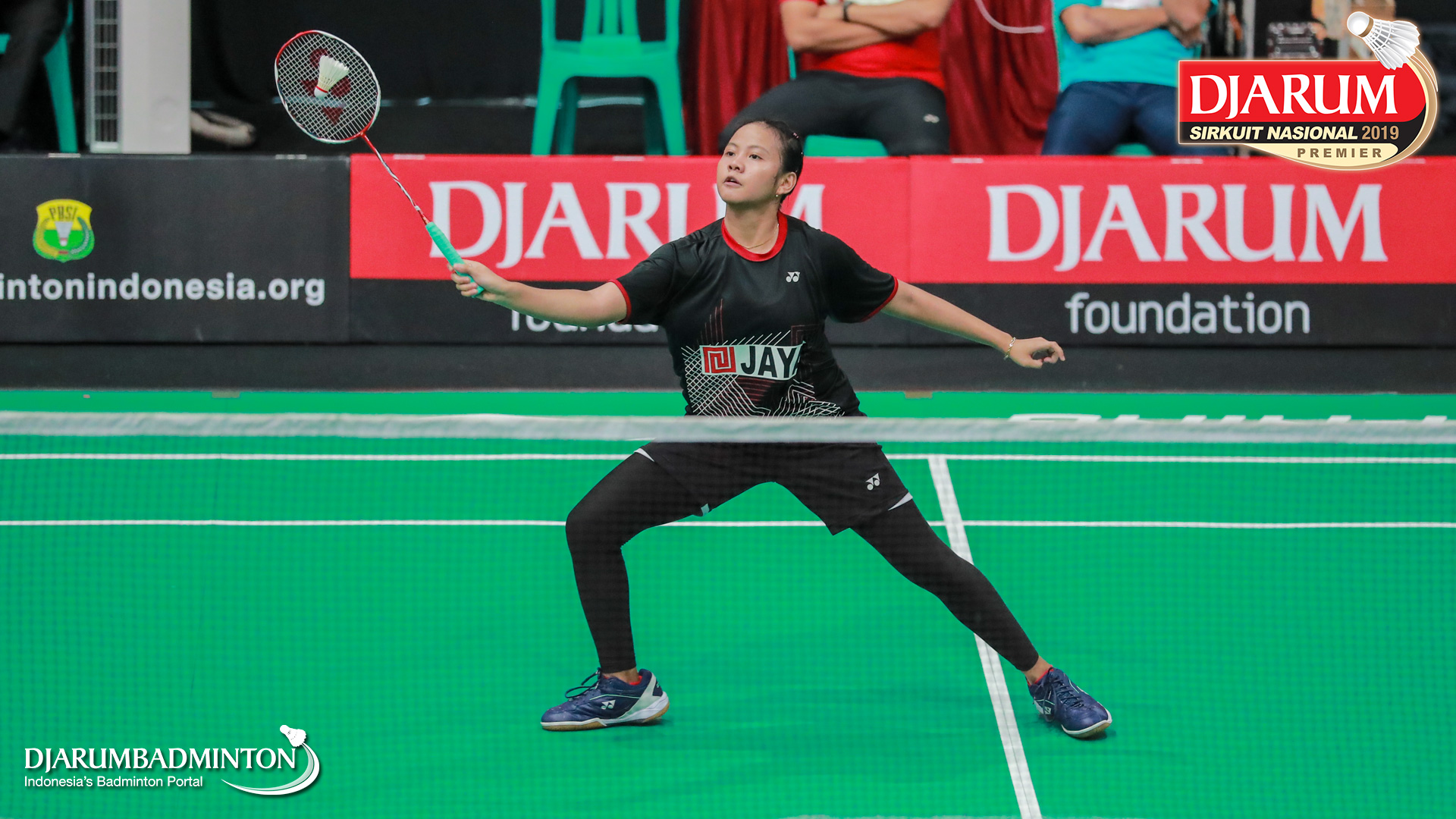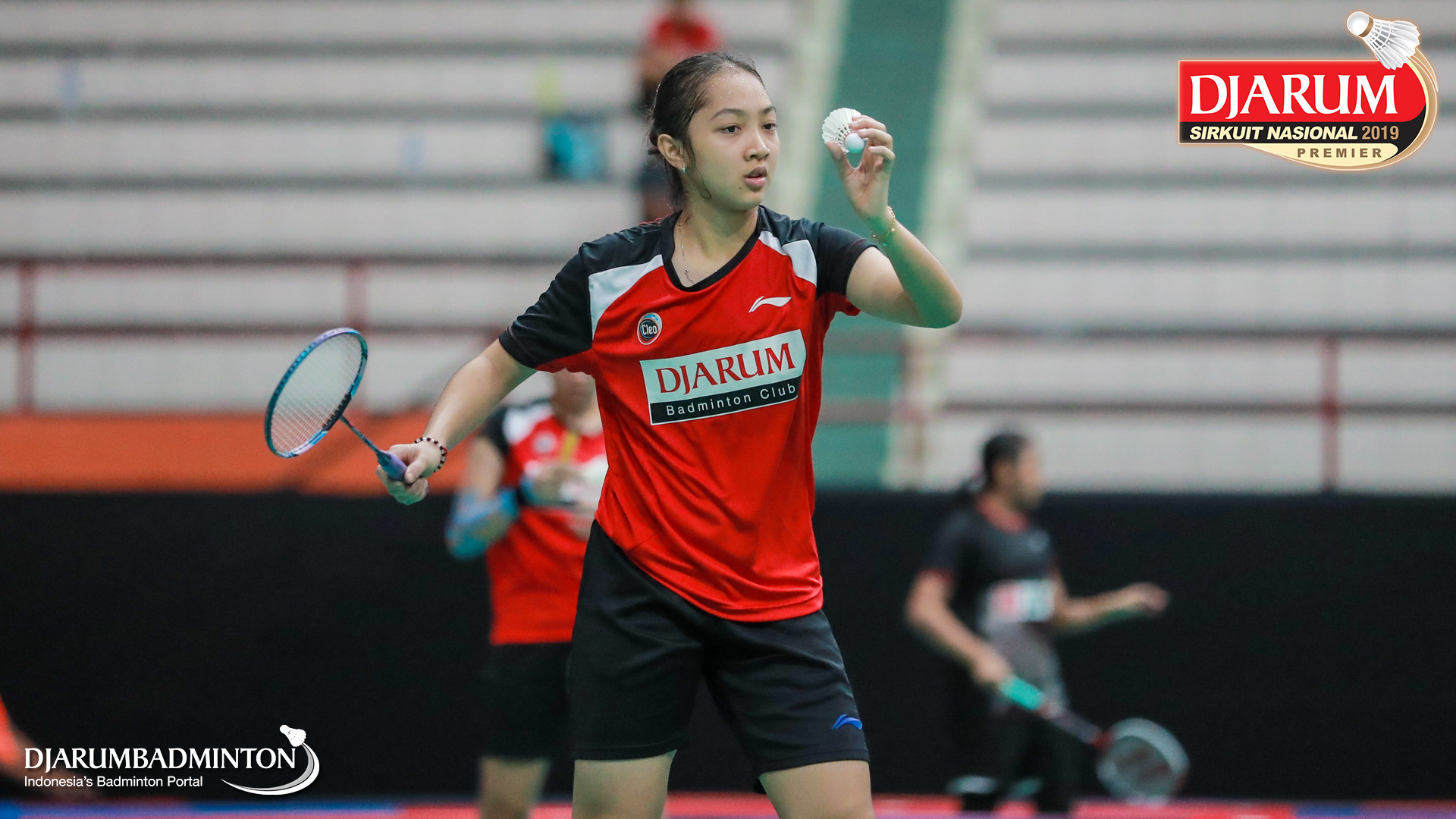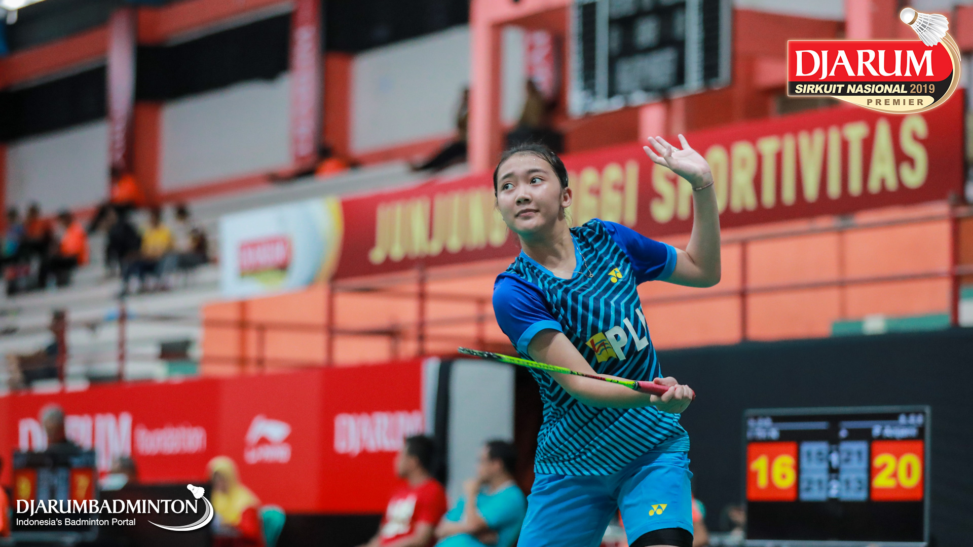 Made Dinda Windiasari (PB Djarum, Kudus) bersiap melakukan servis