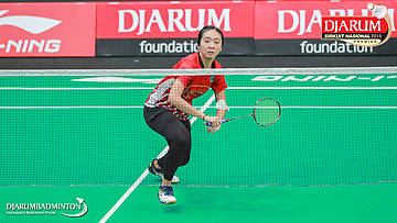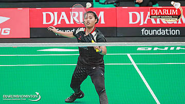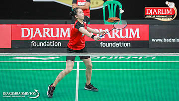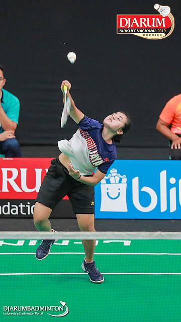 Irdina Naurah Mirza (PB Djarum, Kudus) menyambut shuttlecock