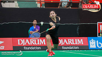 Ivanna Celia Handoyo (PB Djarum, Kudus) berusaha menggapai pengembalian