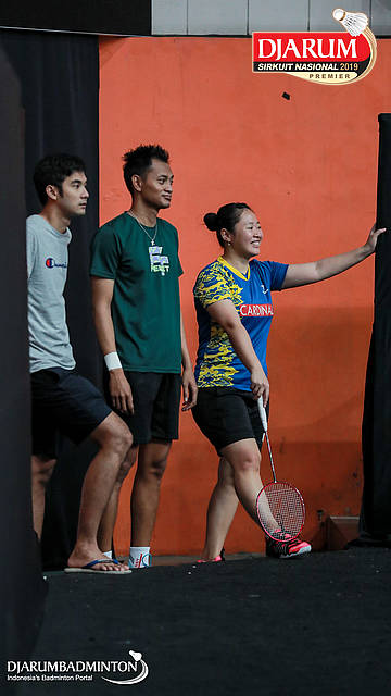 riyanto subagja, Nugroho Andi Saputro, Tiara Rosalia Nuraidah saat menonton pertandingan di pinggir lapangan