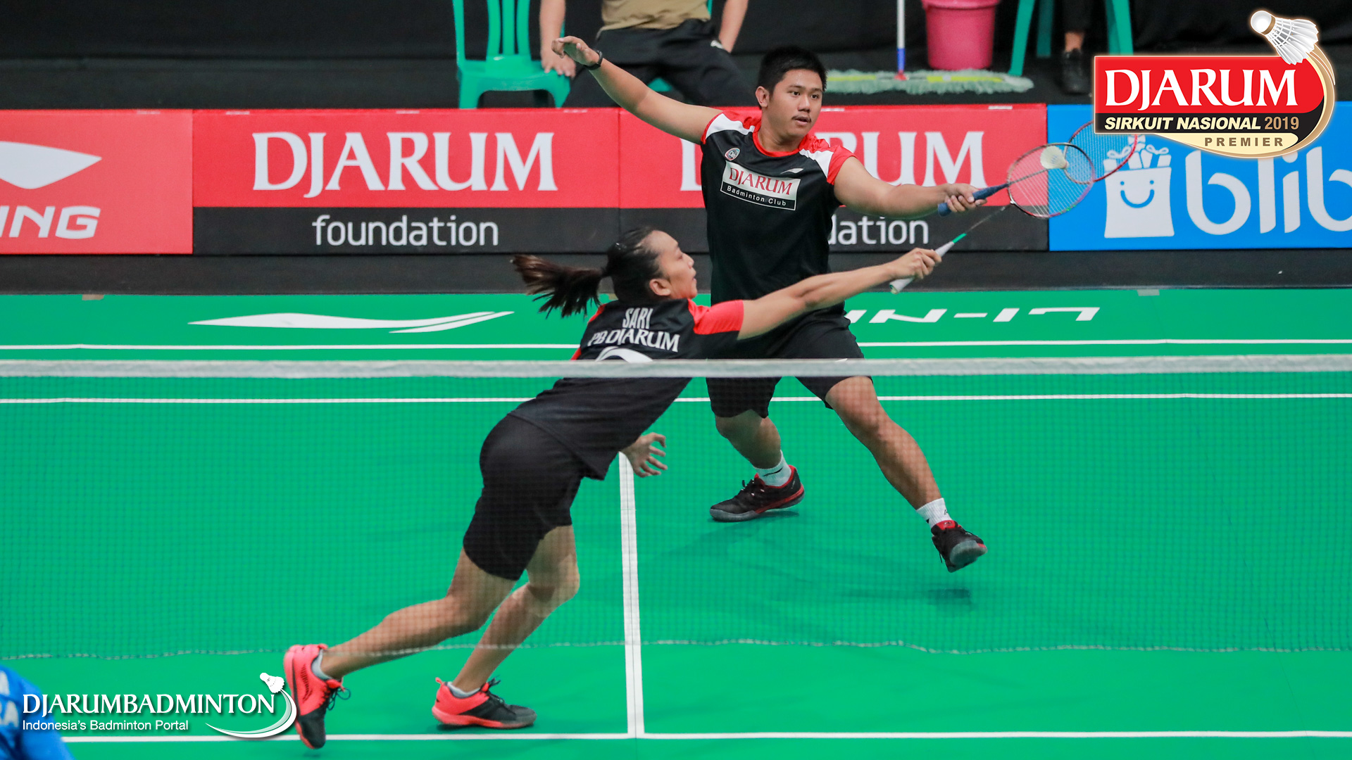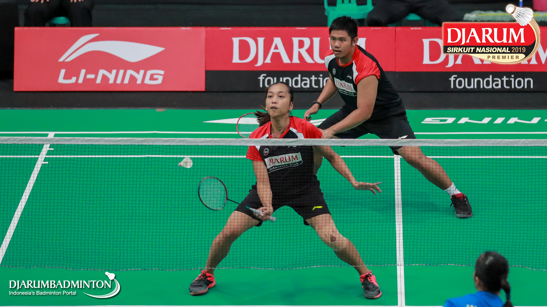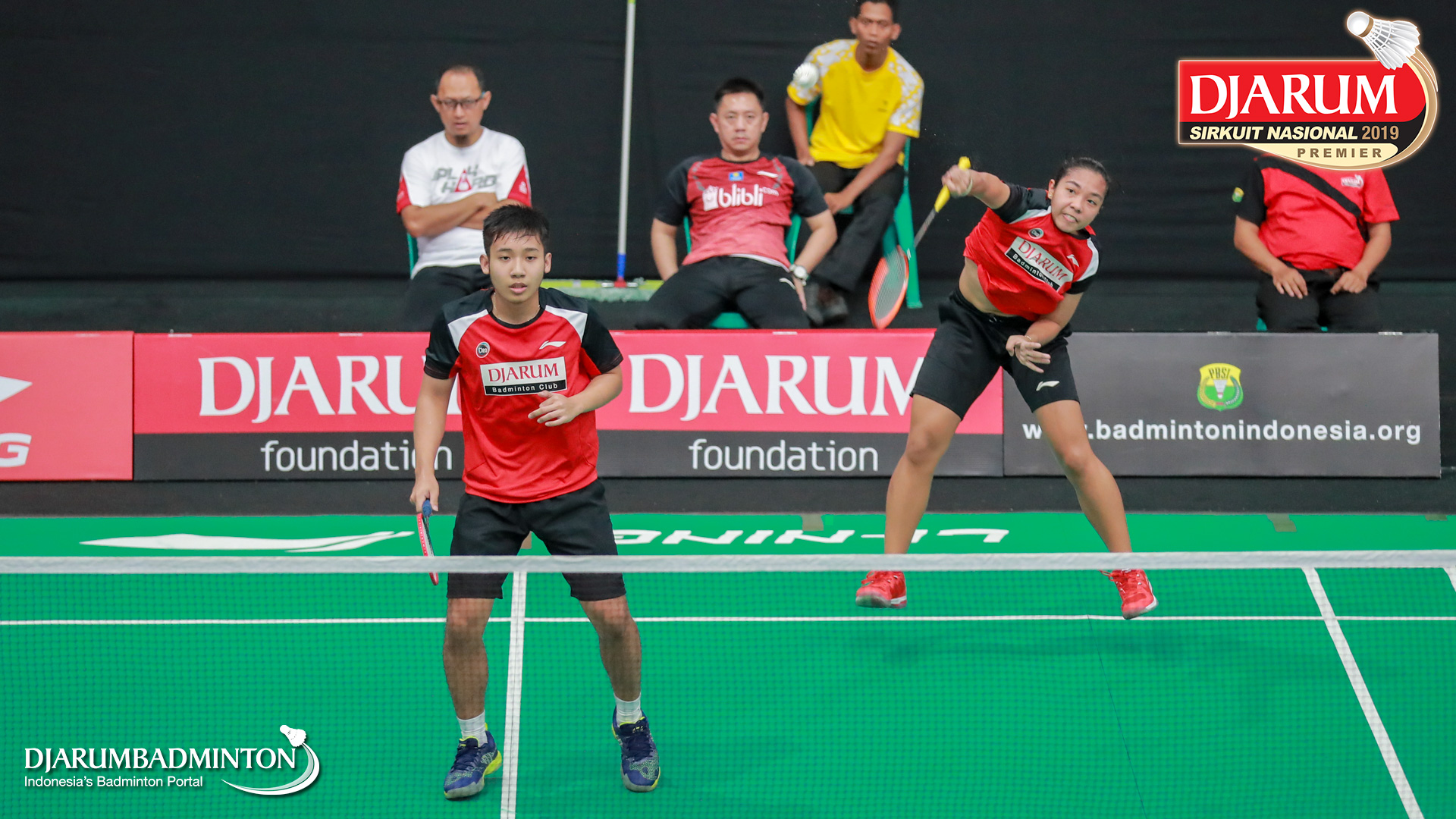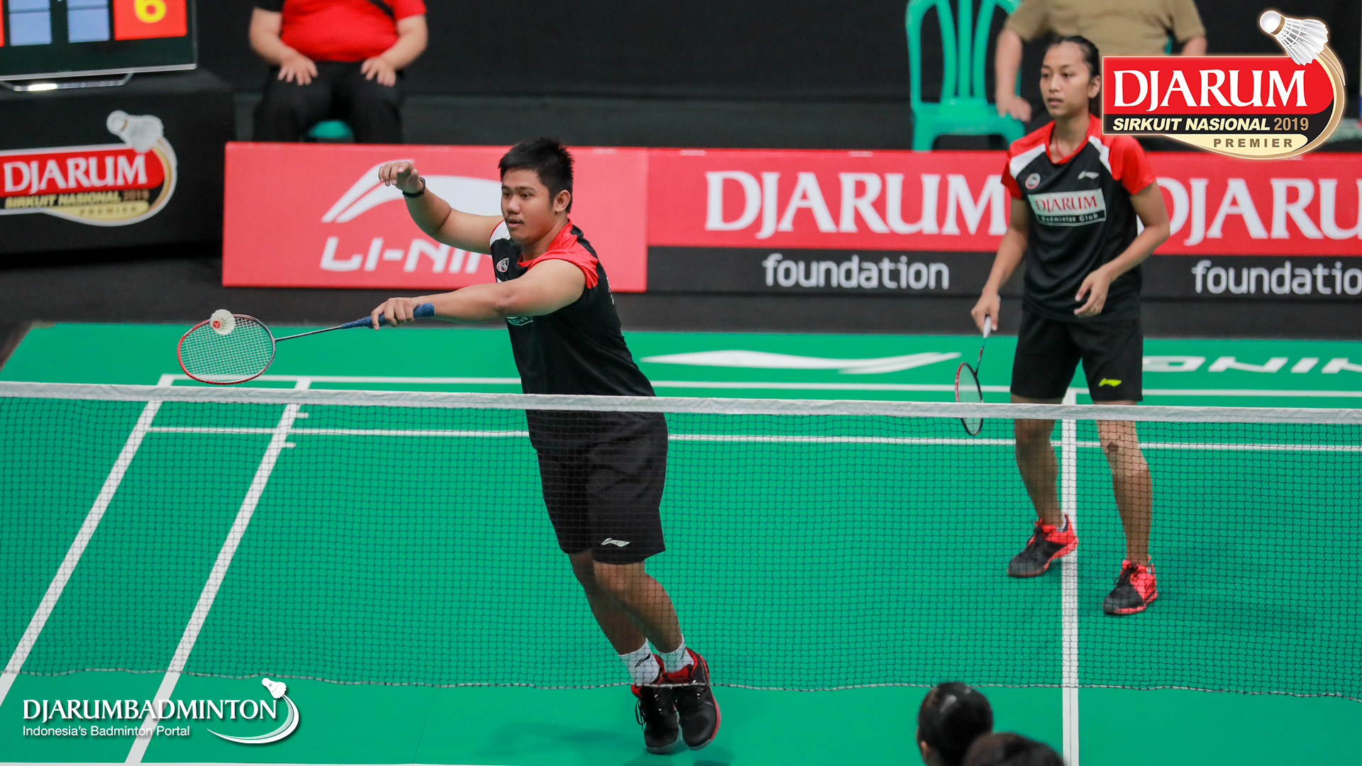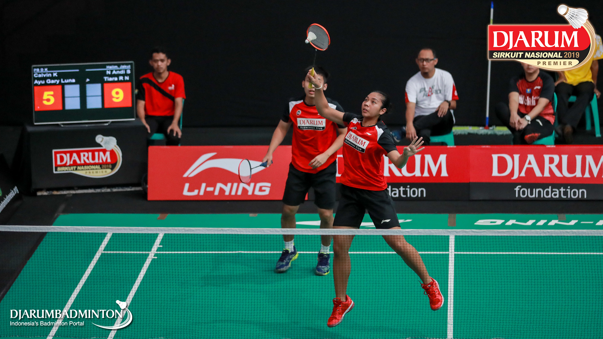 Calvin Kristanto+Ayu Gary Luna Maharani (PB Djarum, Kudus) menyambut shuttlecock