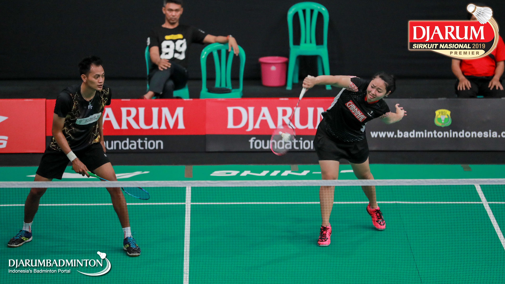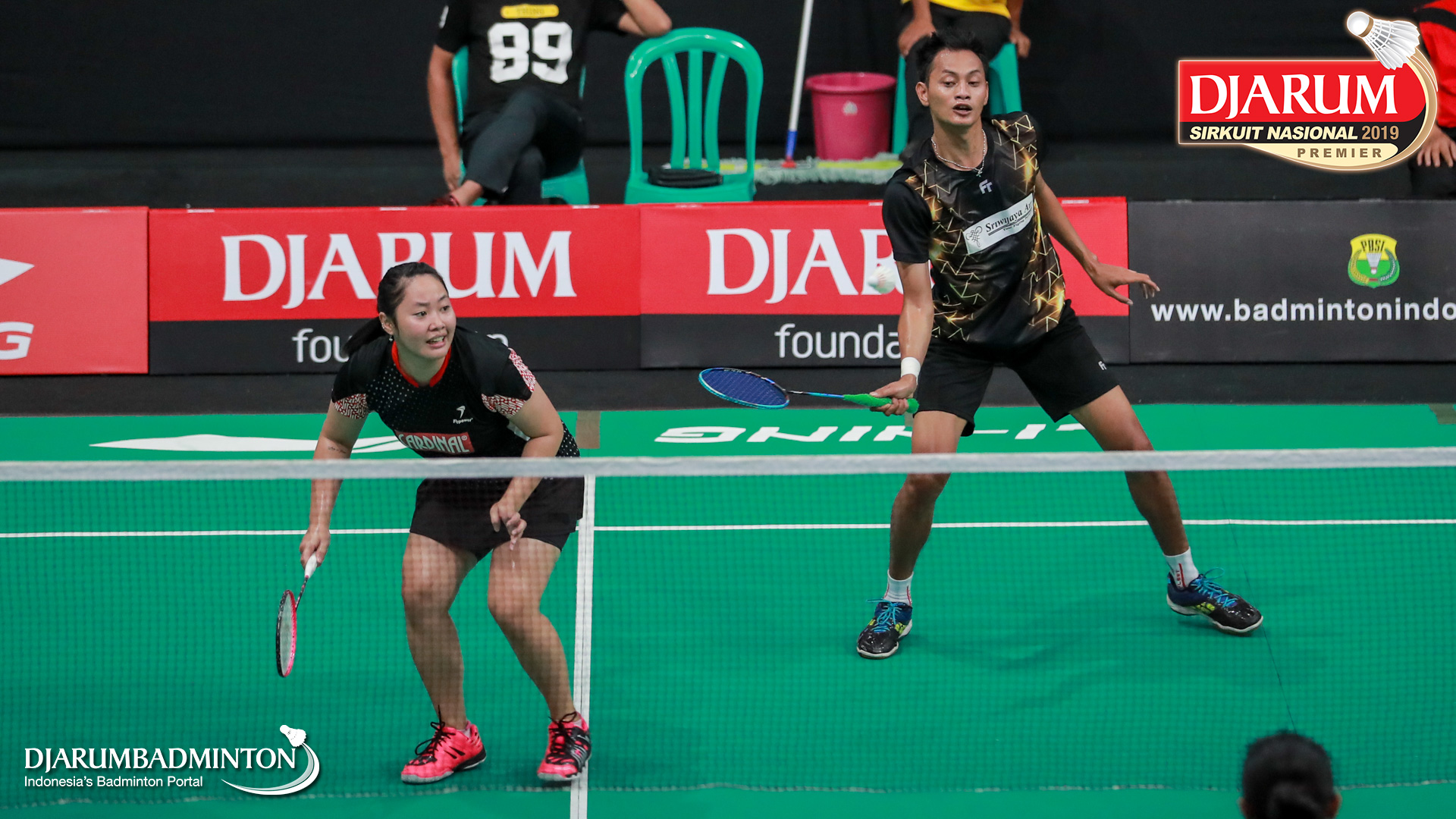Nugroho Andi Saputro+Tiara Rosalia Nuraidah (Halim, Jakut+Mutiara Cardinal, Bandung) berusaha melakukan pertahanan