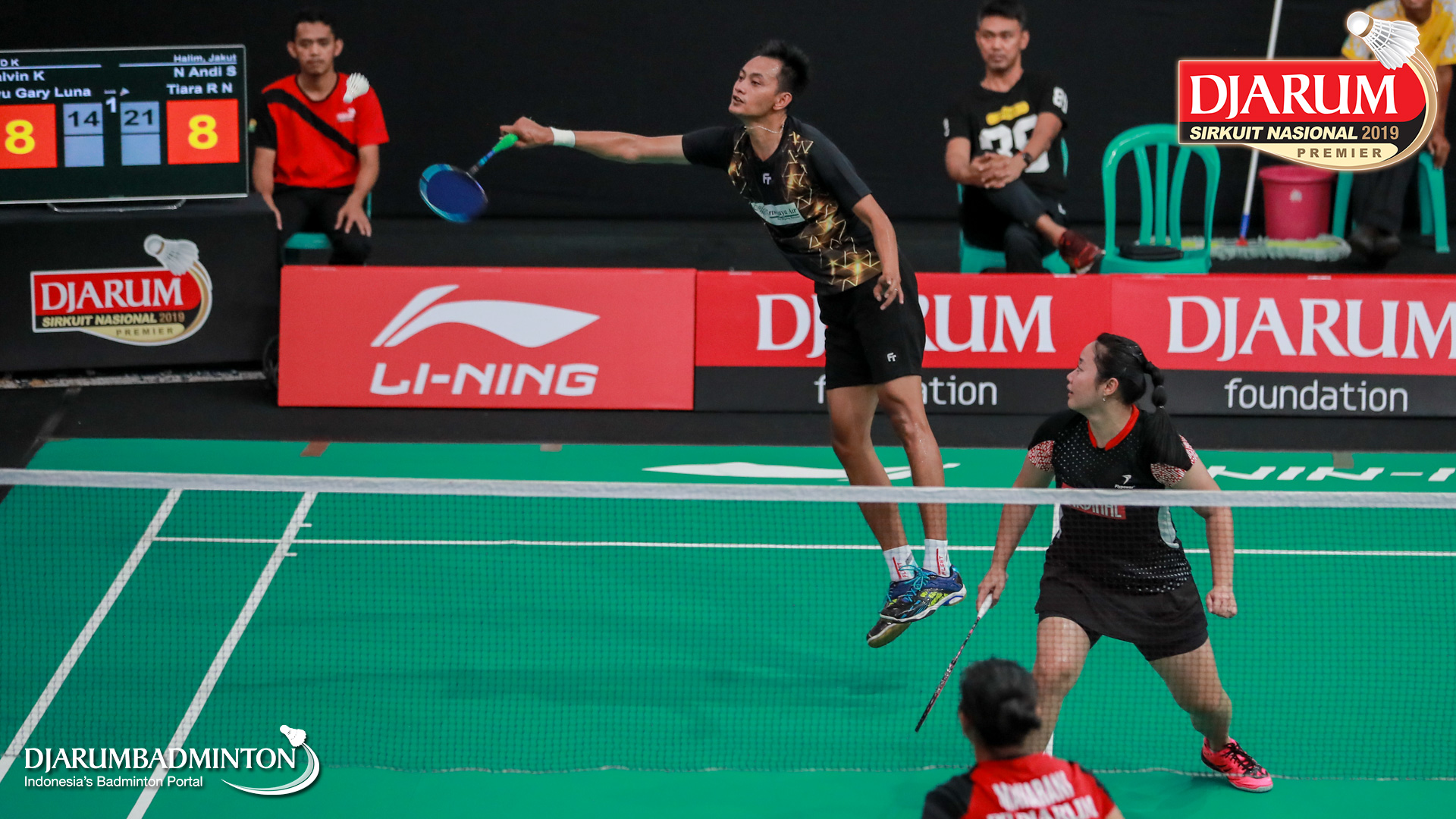 Calvin Kristanto+Ayu Gary Luna Maharani (PB Djarum, Kudus) melepaskan serangan