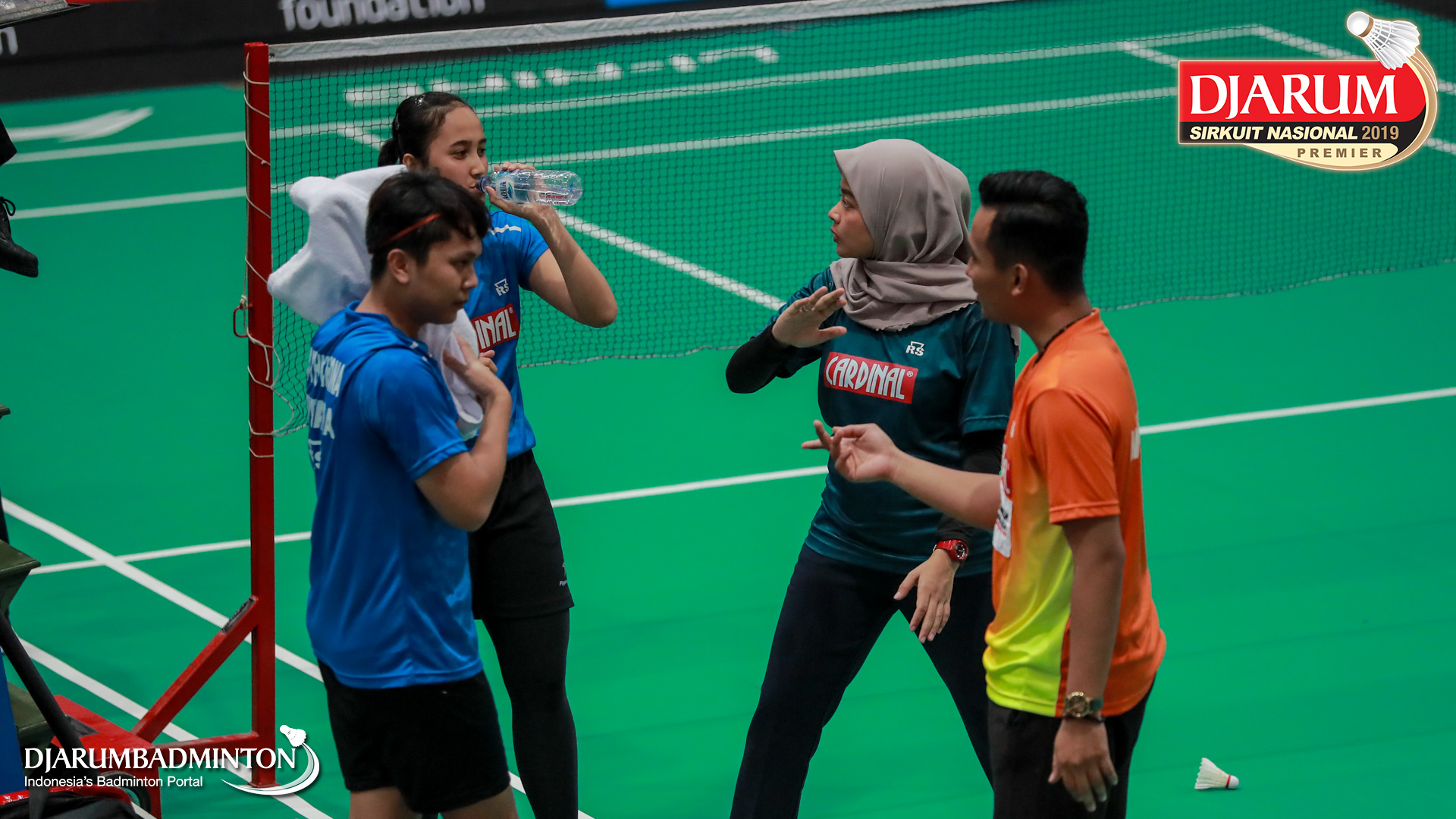 Alif Rafsyah Mauthuthihona+Monika Insany (Mutiara Cardinal, Bandung) mendapat pengarahan dari pelatih