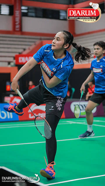 Alif Rafsyah Mauthuthihona+Monika Insany (Mutiara Cardinal, Bandung) melepaskan serangan