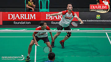 Asghar Herfanda+Rian Canna Varo (PB Djarum, Kudus) mengembalikan serangan
