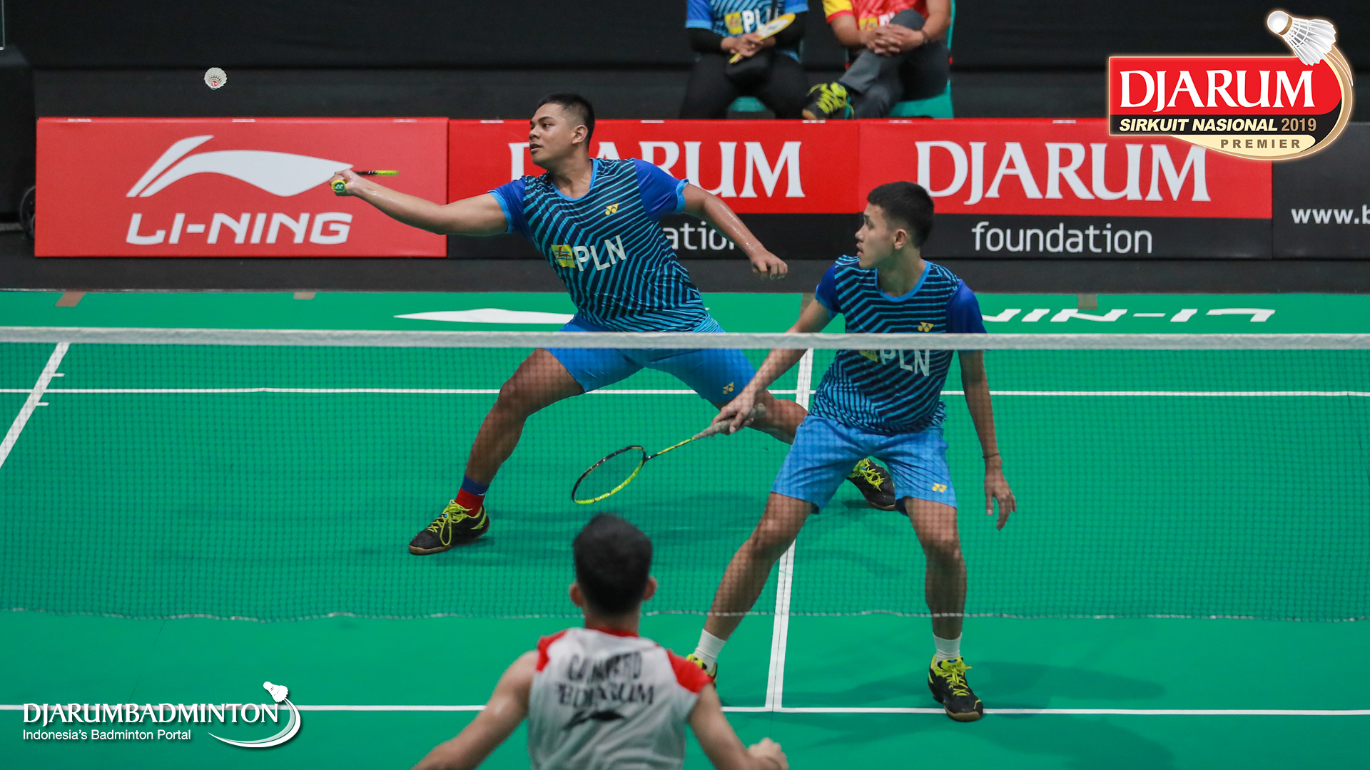 Bobby Alfiero Riyandino Hardja+Rexky Afdillah (Sangkuriang Graha Sarana PLN Bandung) bersiap menyambut shuttlecock
