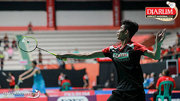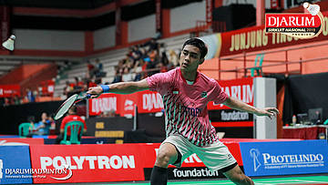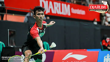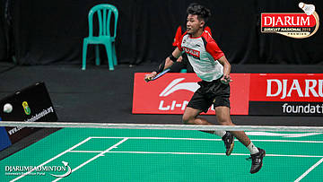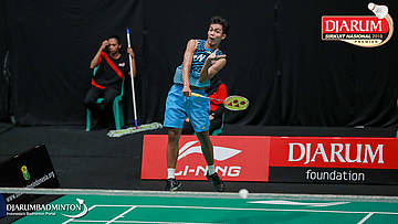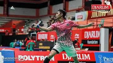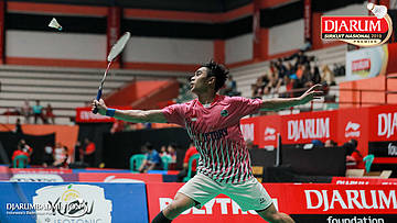 Bagas Kristianto Nugroho (PB Djarum, Kudus) melepaskan serangan