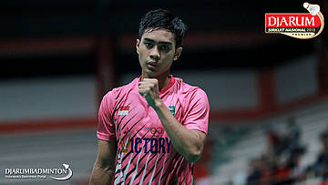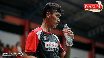 Rezha Akbar Raja Husain Ym (PB Djarum, Kudus) saat waktu interval pertandingan