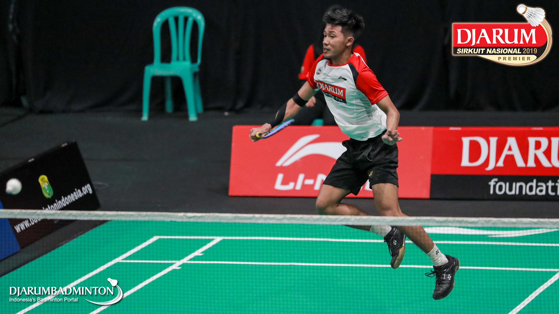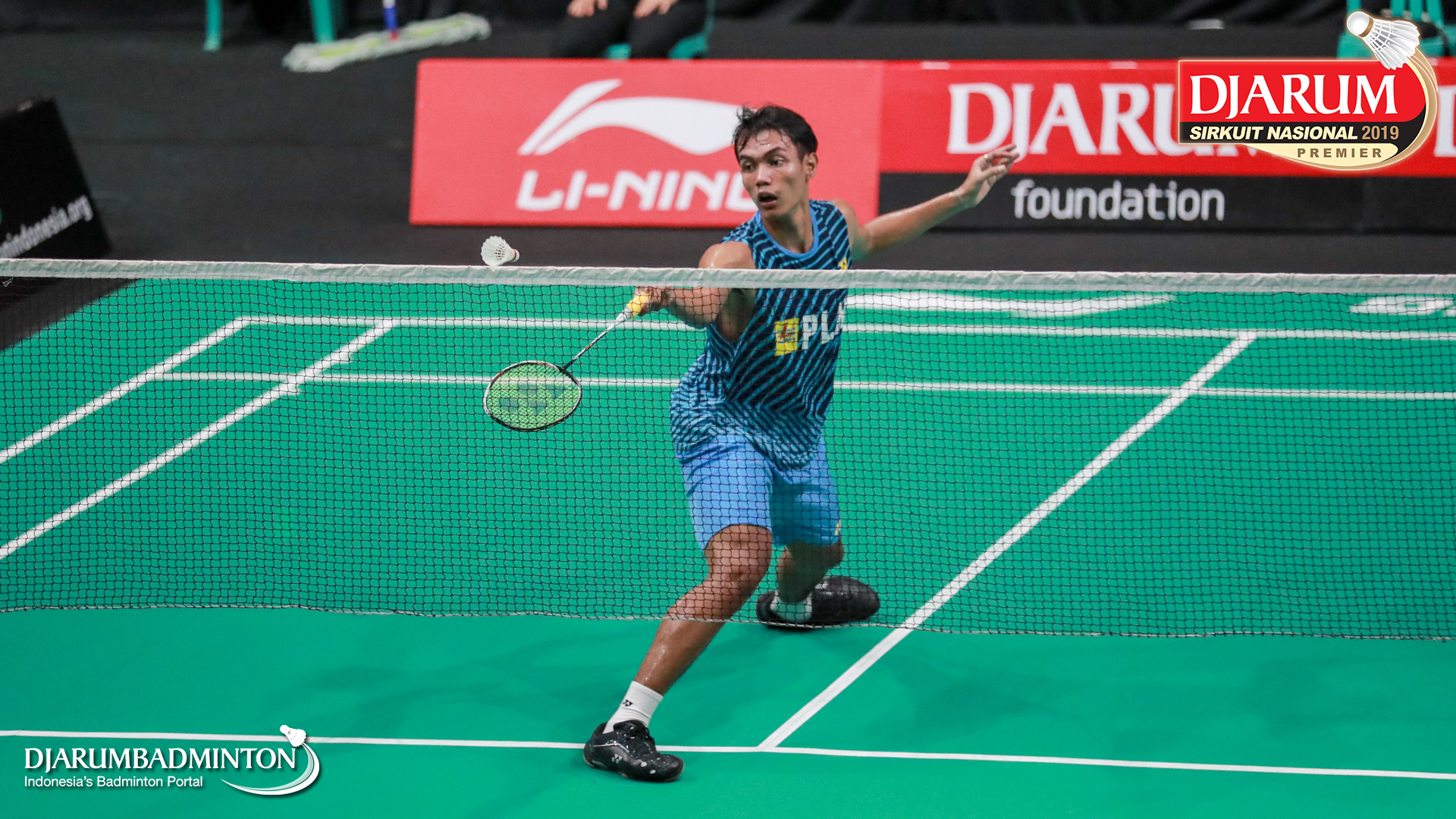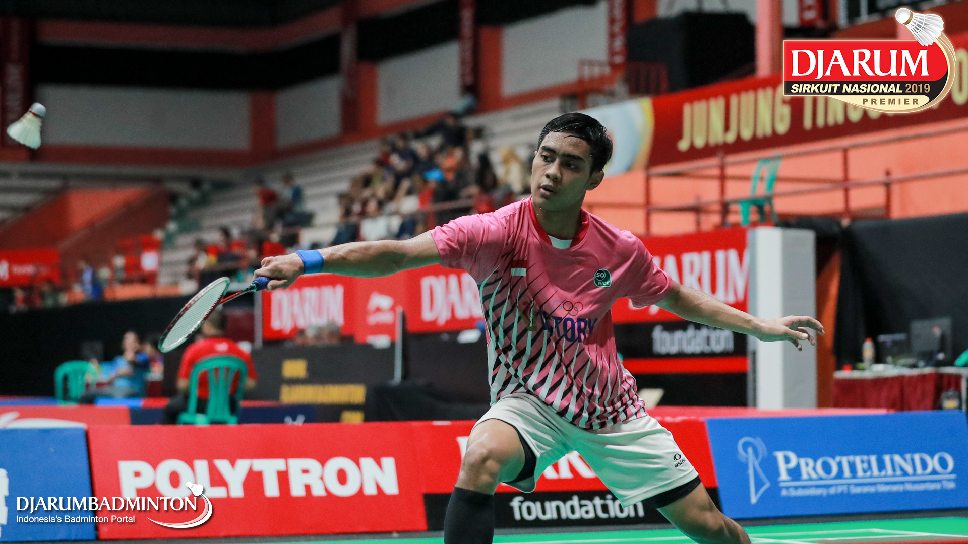 Rezha Akbar Raja Husain Ym (PB Djarum, Kudus) menyambut serangan