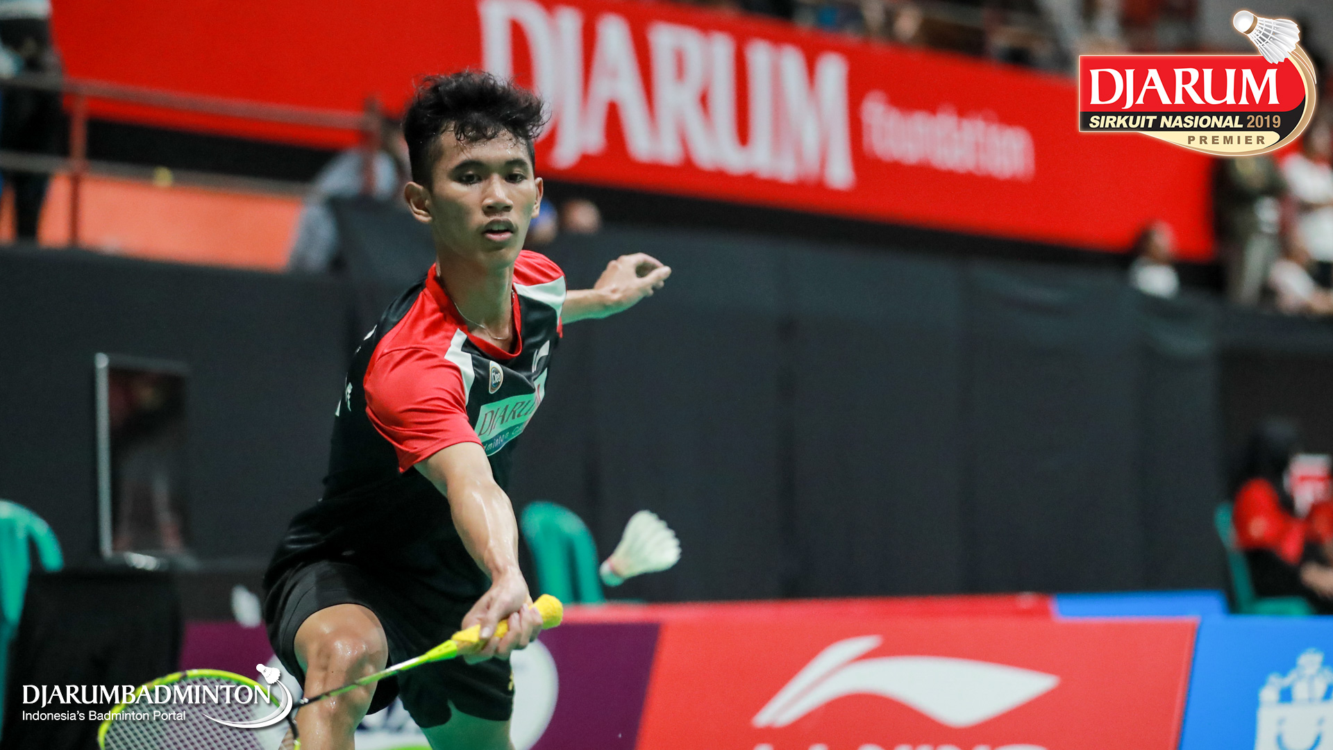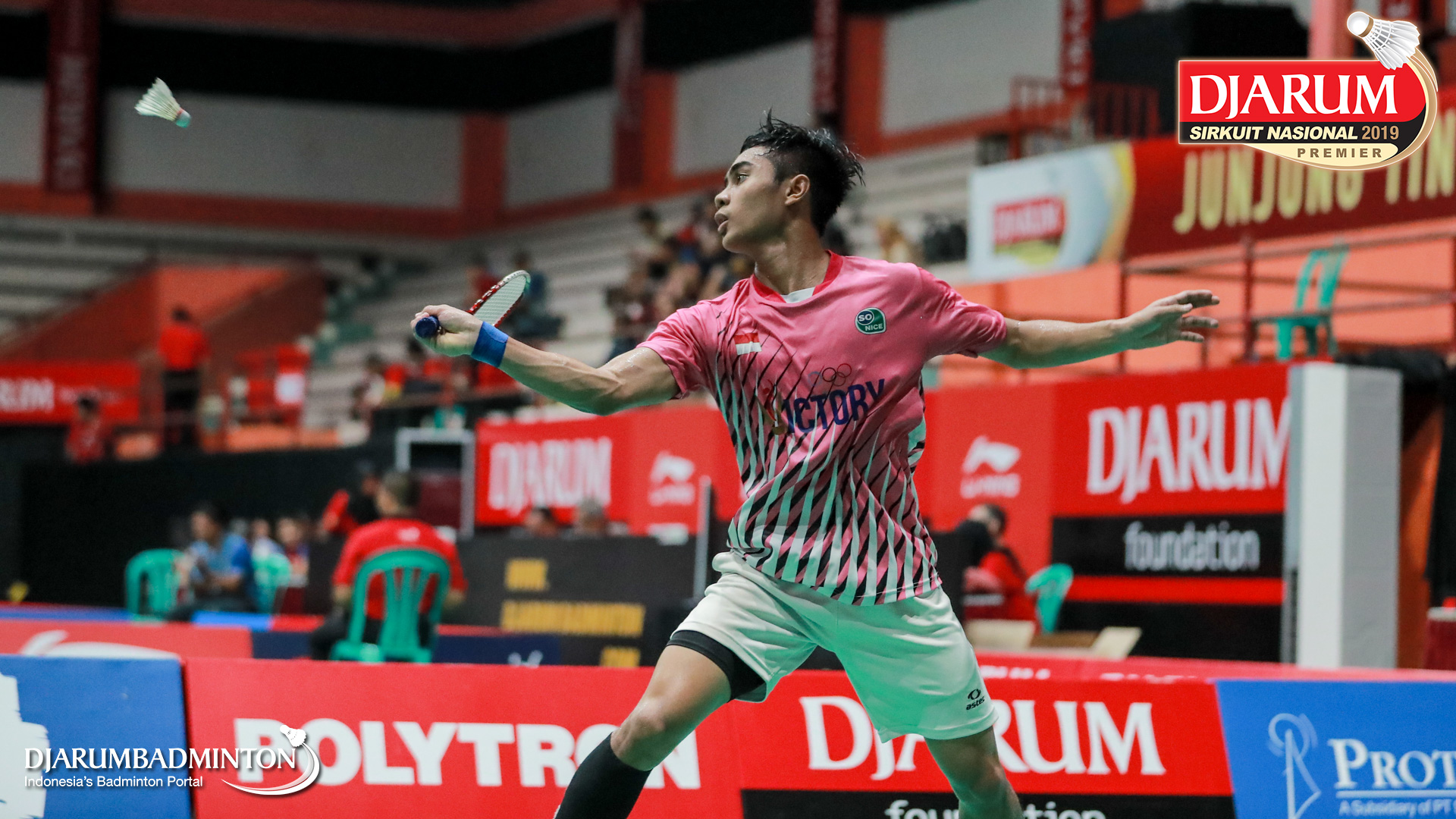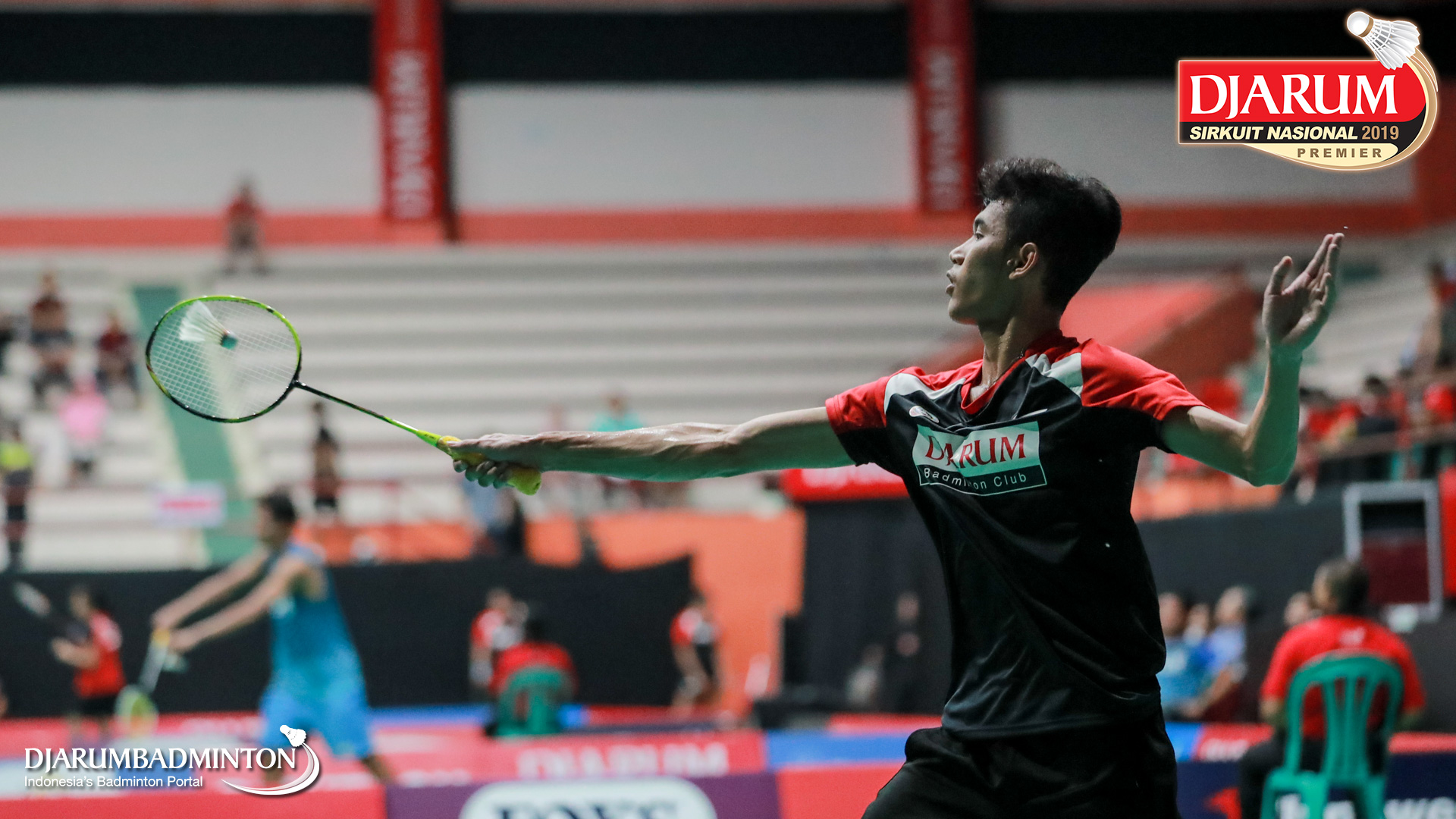 Rezha Akbar Raja Husain Ym (PB Djarum, Kudus) menyambut serangan