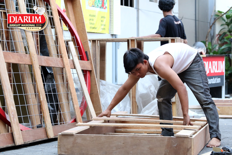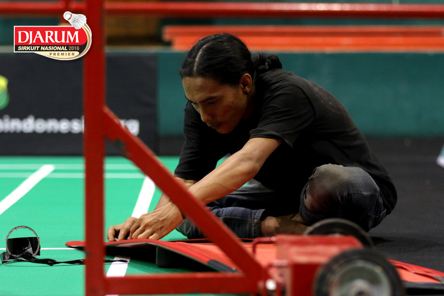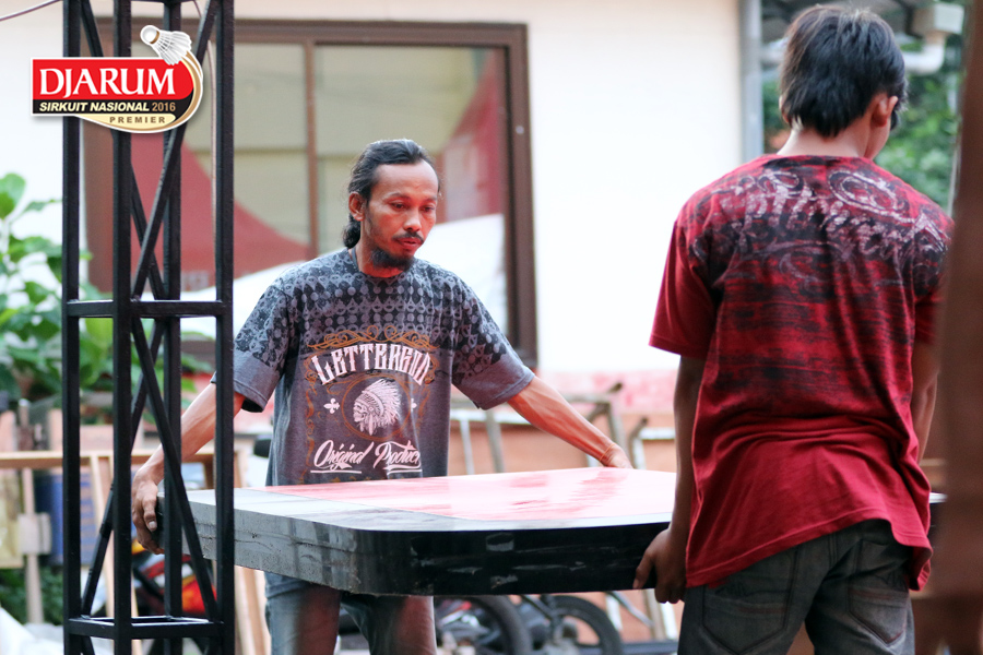 Suasana Persiapan Djarum Sirkuit Nasional Li-Ning Premier Jawa Timur Open 2016 di GOR Sudirman, Surabaya.