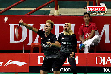 Tedi Supriadi/Della Augustia (Djarum Kudus) Menyambar Pengembalian Tanggung.