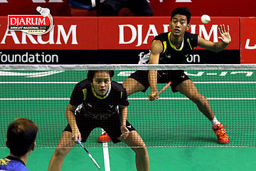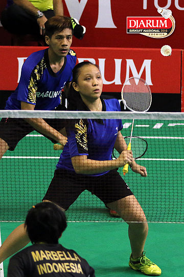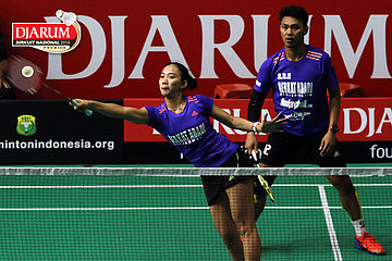 Fernando Kurniawan/Dian Fitriani (Djarum Kudus/Pertamina Fastron) Mengembalikan Shuttlecock.