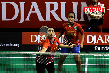 Dina Ghassani/Windi Siti Mulyani (Victory Bogor) Mengembalikan Shuttlecock