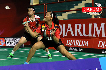 Rahmad Julio Rafli Ritonga/Helena Ayu Puspitasari (Djarum Kudus) Mengembalikan Shuttlecock