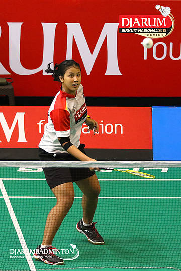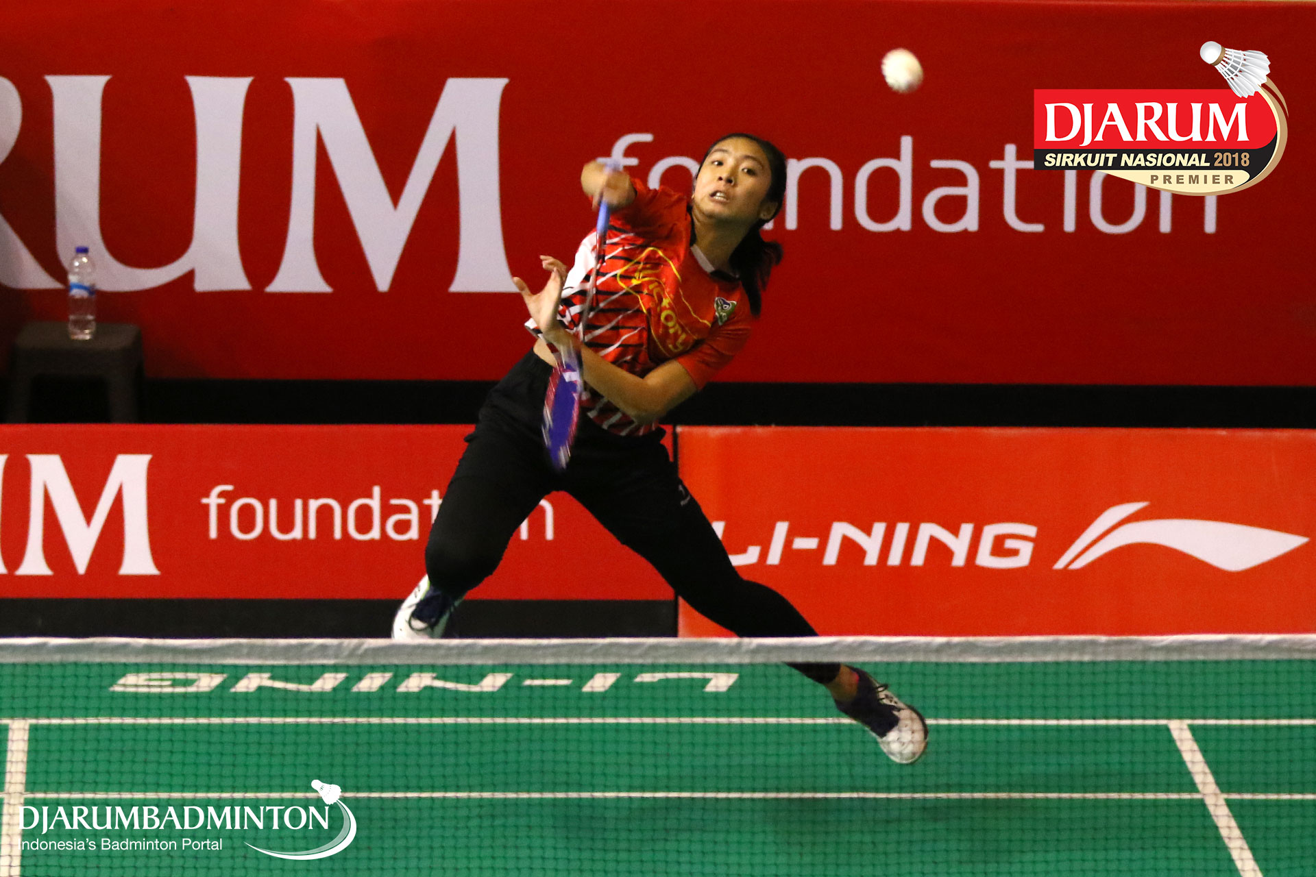 Irdina Naurah Mirza (PB Djarum, Kudus) melepaskan serangan