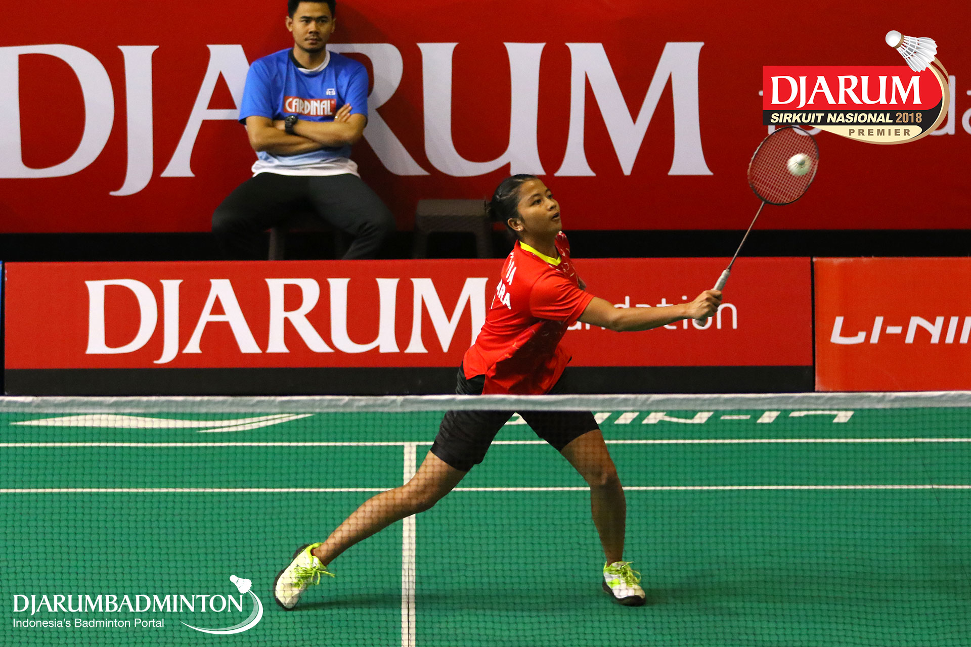 Aisha Galuh Maheswari (PB Djarum, Kudus) mengembalikan serangan