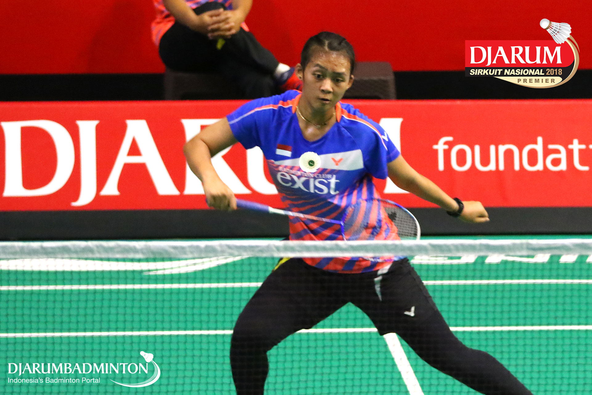 Hana Sri Najilah (Exist, Jakarta) berusaha melakukan pertahanan