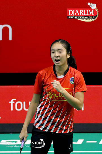 Melsya Nur Fitriani (PB Victory Bogor, Jaktim) menyambut shuttlecock