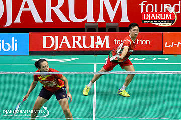 Rizko Asuro/Keshya Nurvita Hanadia (Pertamina Fastron, Jakut+Berkat Abadi, Banjar) mengembalikan serangan