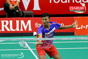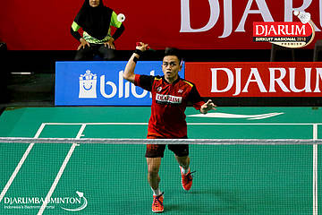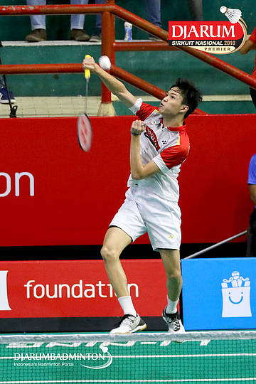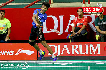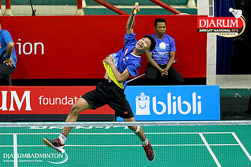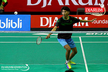 Herdian Muhammad Labib (PB Djarum, Kudus) bersiap menyambar pengembalian