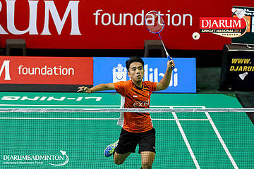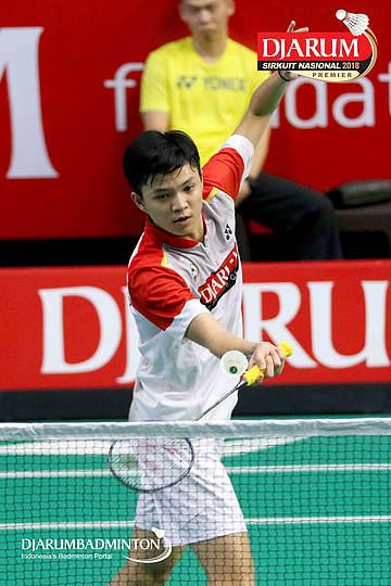 Herdian Muhammad Labib (PB Djarum, Kudus) melepaskan serangan