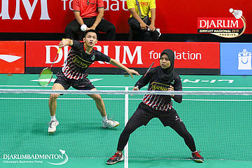 M. Lucky Andres Apriyanda+Helena Ayu Puspitasari (PB Djarum, Kudus) menyambut pengembalian