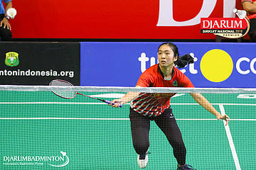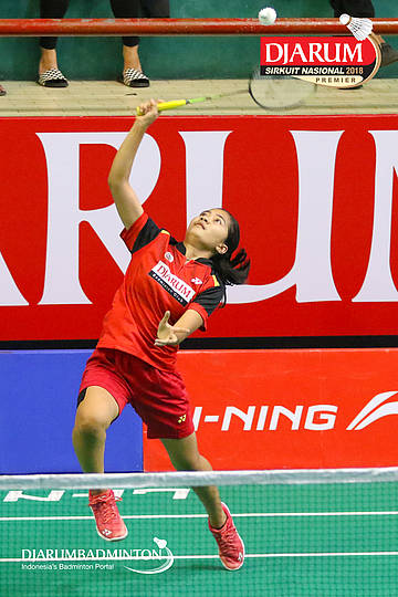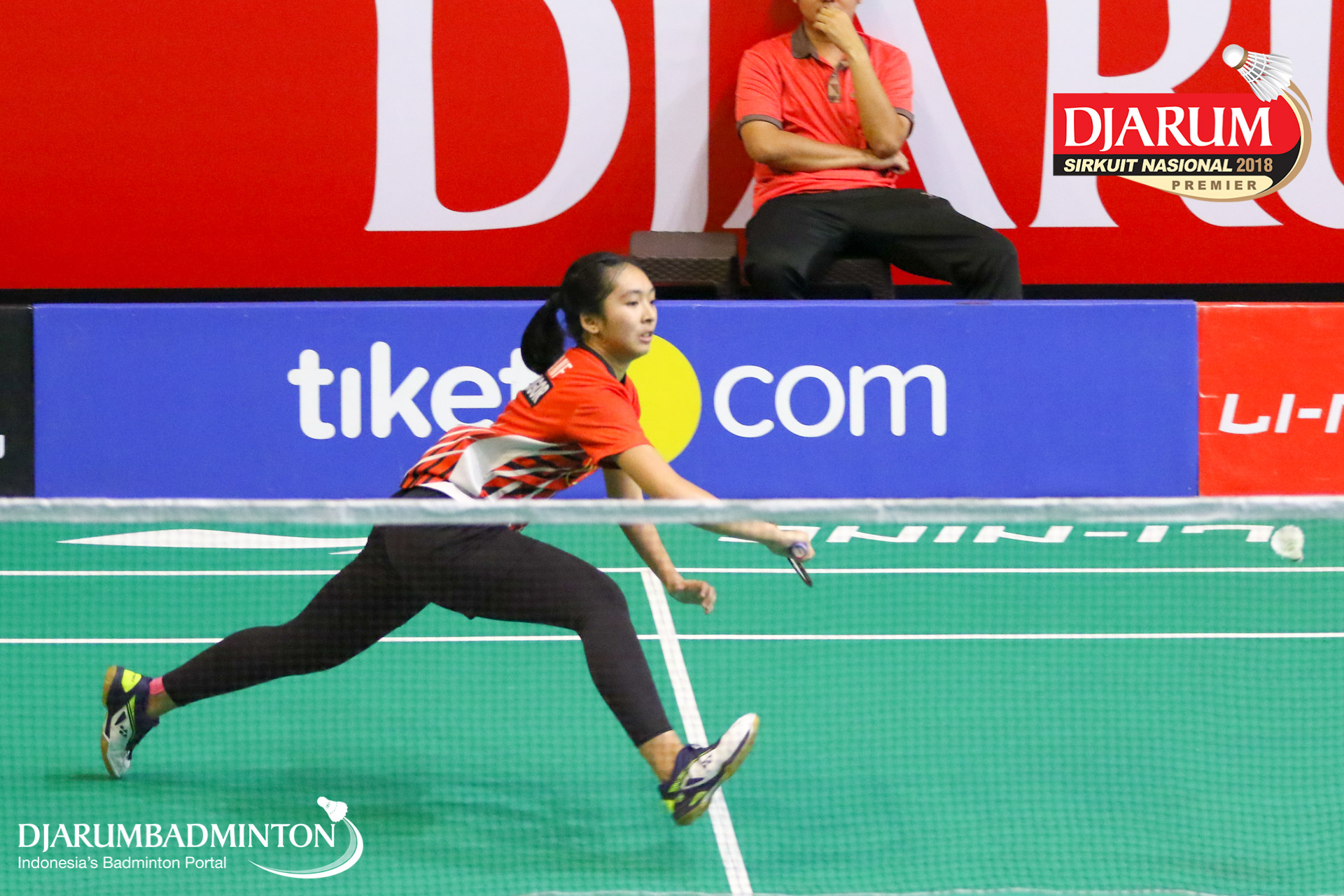 Irdina Naurah Mirza (PB Djarum, Kudus) mengembalikan serangan