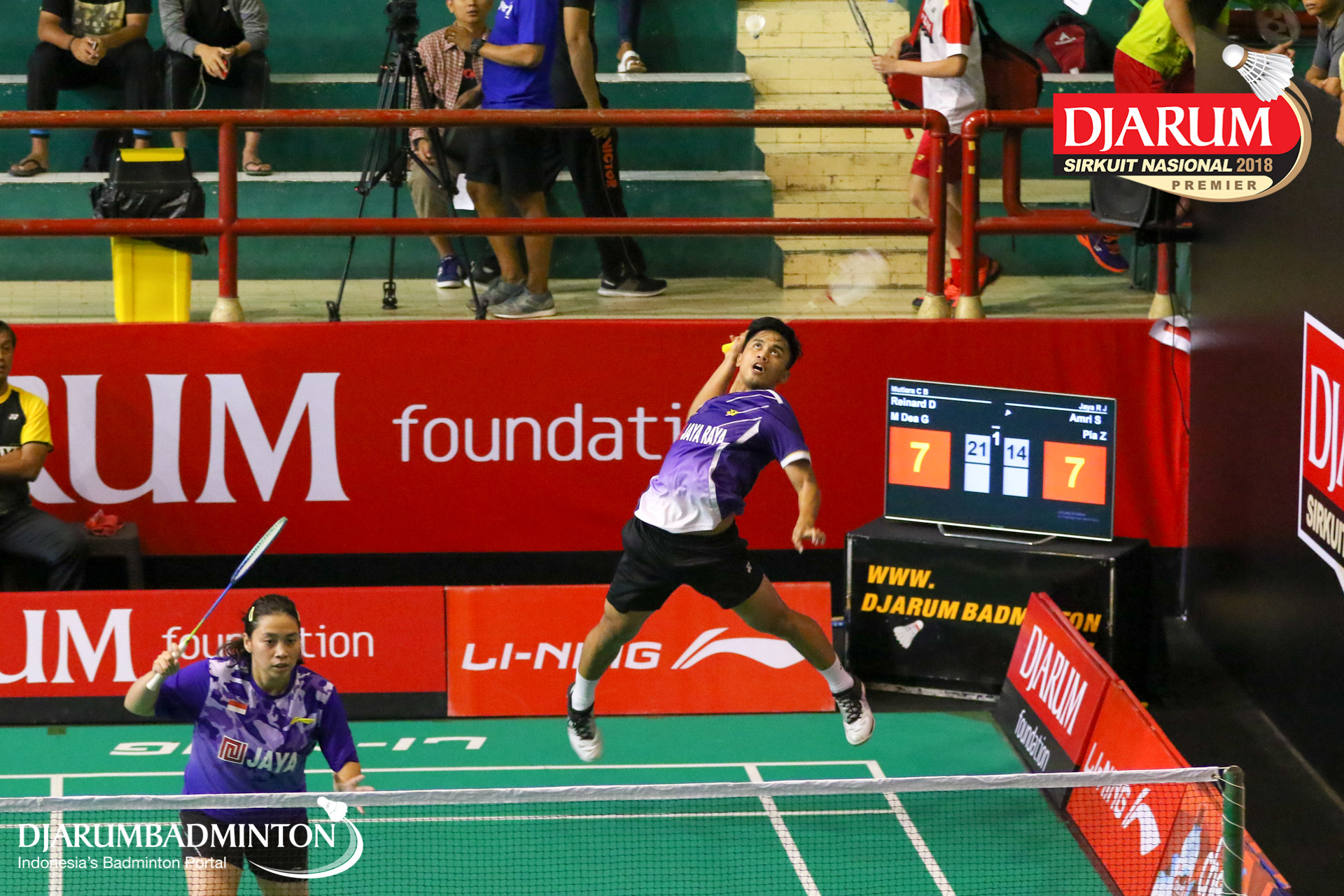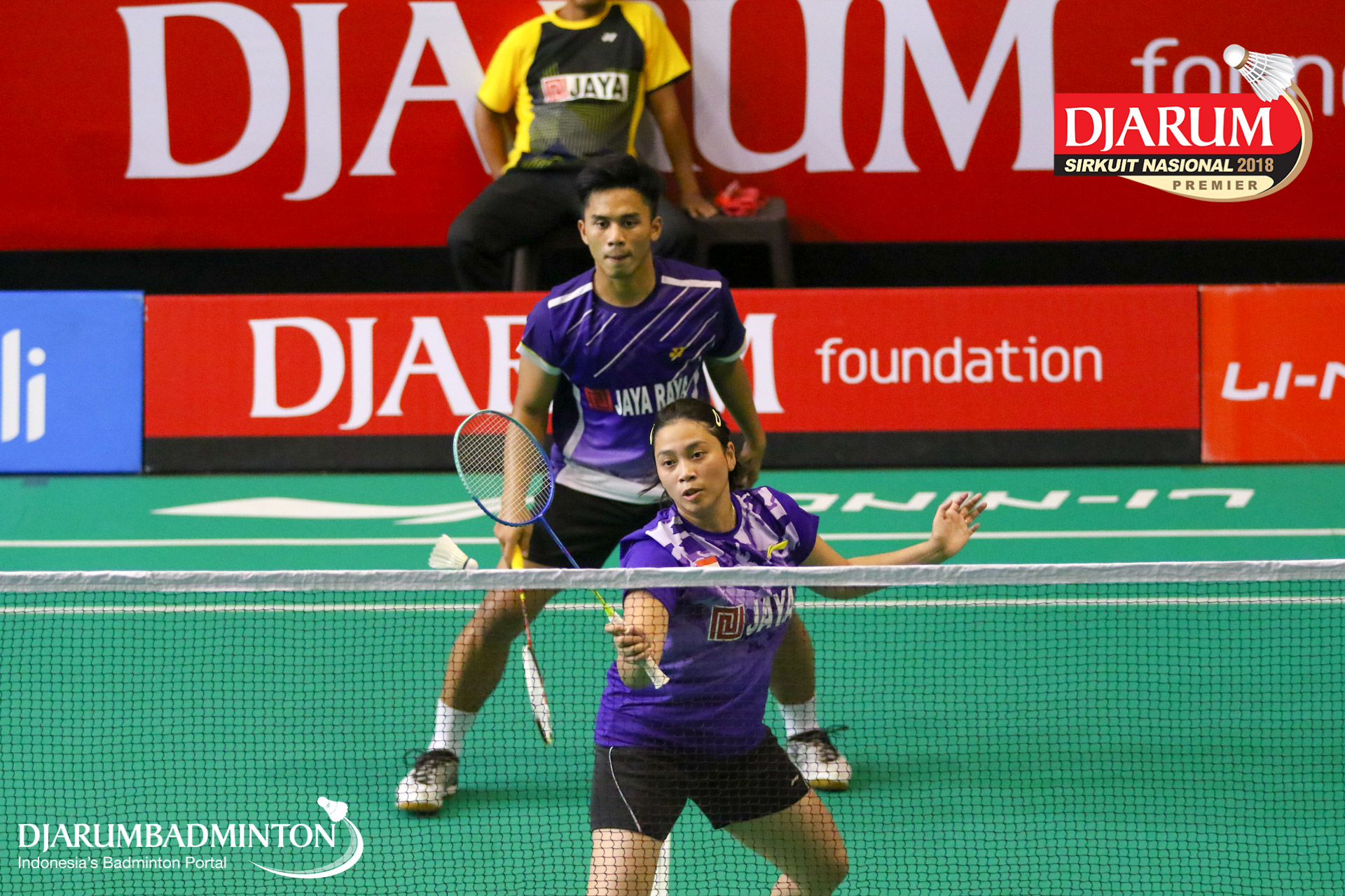 Amri Syahnawi+Pia Zebadiahbernadet (Jaya Raya Jakarta, Jakpus) berusaha melakukan pertahanan