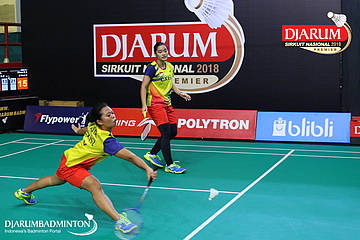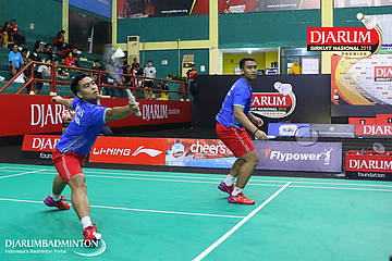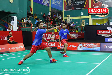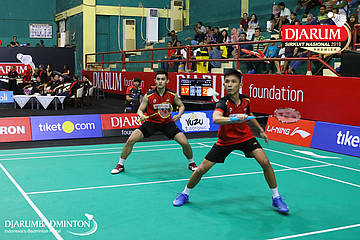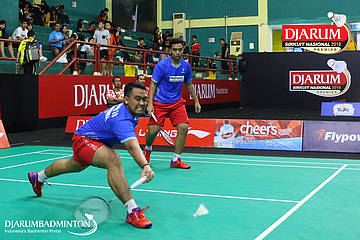 M. Lucky Andres Apriyanda+Respati Banuaji (PB Djarum, Kudus) Bersiap menyambut shuttlecock