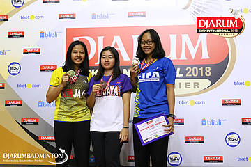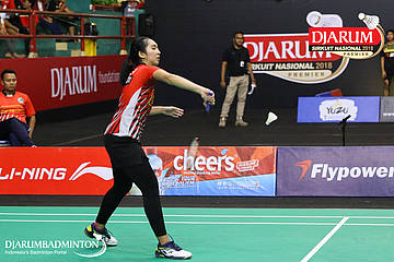 Melsya Nur Fitriani (PB Victory Bogor, Jaktim) menyambut shuttlecock