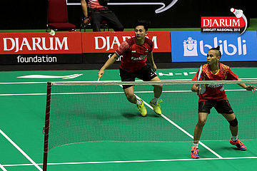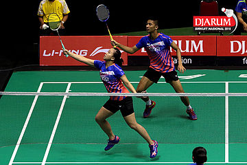 Riky Widianto/Masita Mahmudin (Tjakrindo Masters/Jaya Raya Jakarta) Mengembalikan Shuttlecock