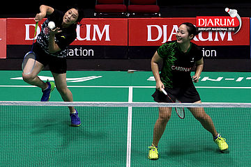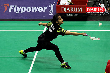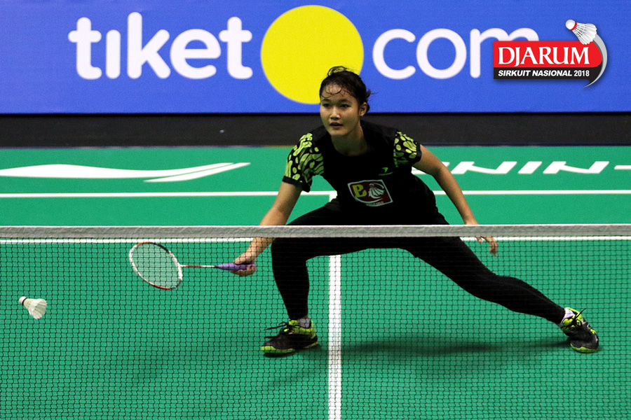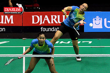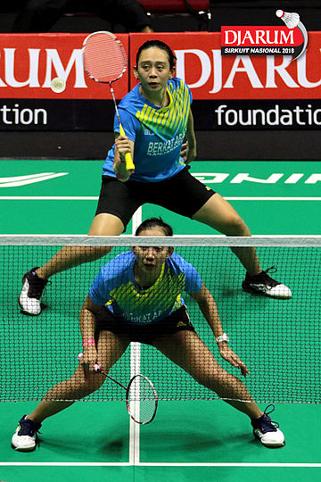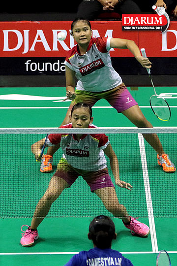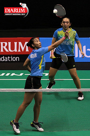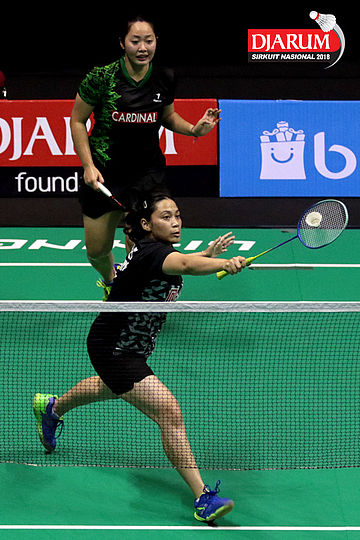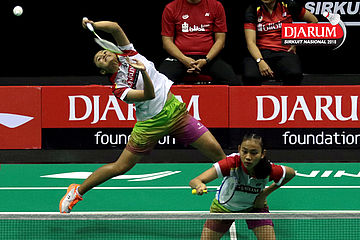 Gity Gabriel Rambing/Sang Ayu Putu Kharisma Maharani (PB Djarum Kudus) Mengembalikan Shuttlecock