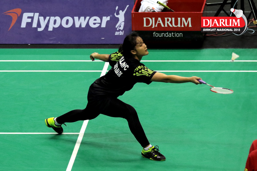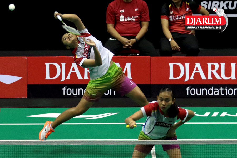 Gity Gabriel Rambing/Sang Ayu Putu Kharisma Maharani (PB Djarum Kudus) Melepaskan Serangan