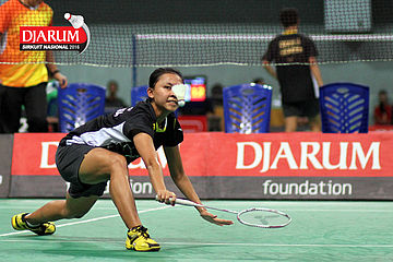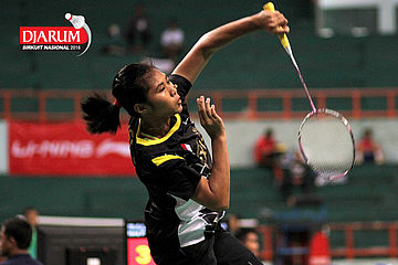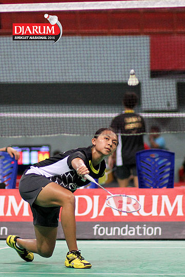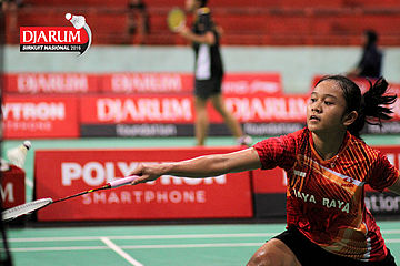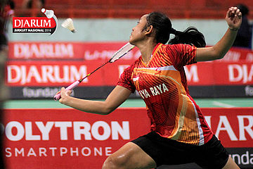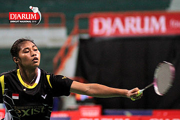 Silvi Wulandari (Djarum Kudus) mengembalikan shuttlecock
