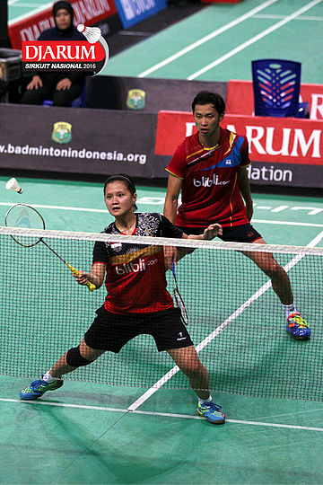 Fran Kurniawan/Komala Dewi (Djarum Kudus) bersiap menyambut pengembalian