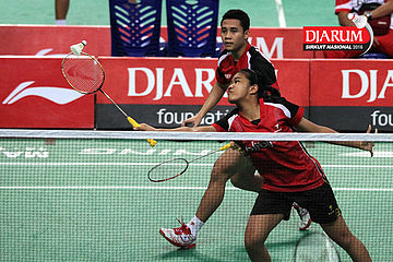 Ardiansyah Putra/Devi Tika (Berkat Abadi) bersiap menyambar pengembalian tanggung