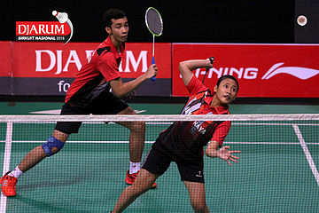 Fran Kurniawan/Fernando Kurniawan (Djarum Kudus) menghadang serangan
