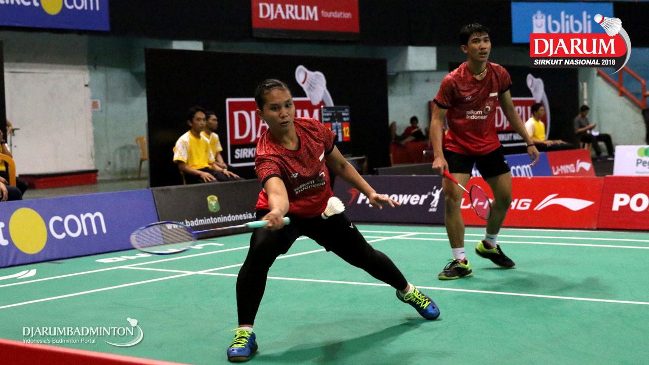 Markis Kido/Masita Mahmudin (Jaya Raya Jakarta) bersiap menghadang serangan