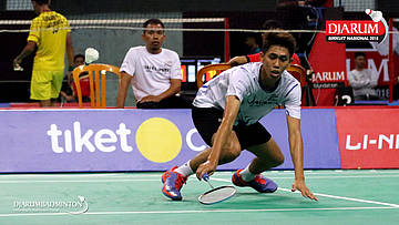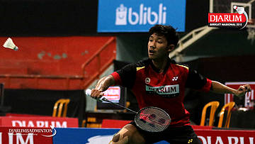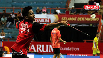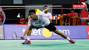 Bagas Kristianto Nugroho (PB Djarum Kudus) mengembalikan shuttlecock