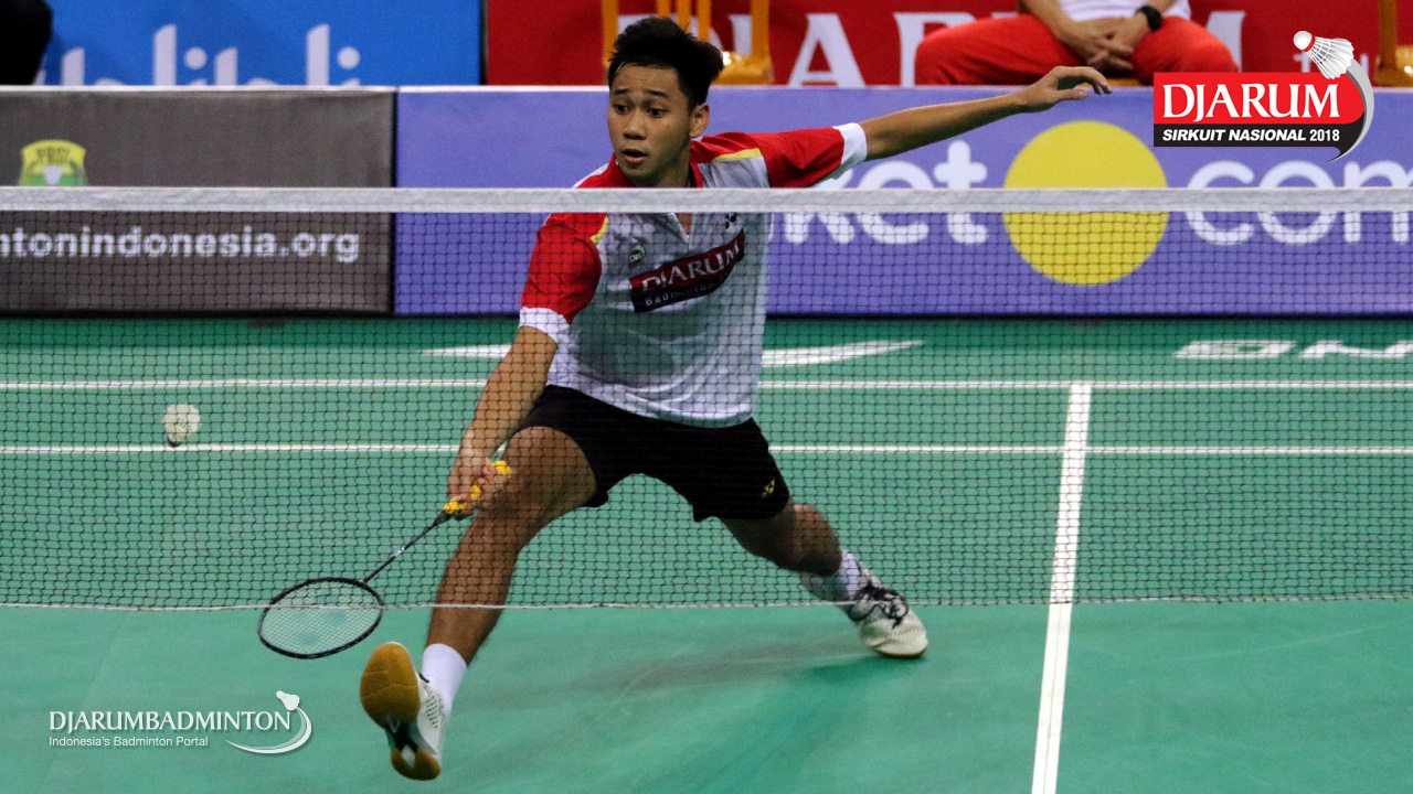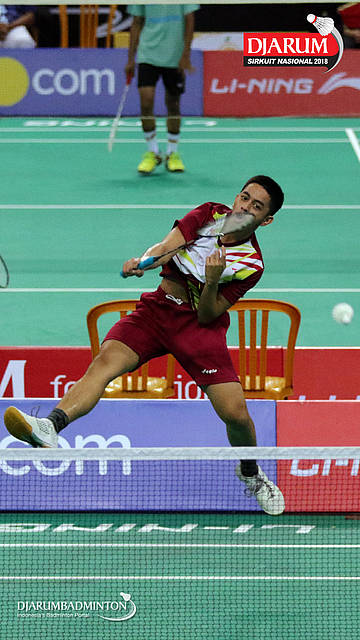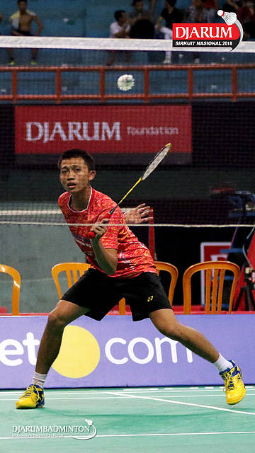 Muhammad Aldo Apriyandi (PB Djarum Kudus) mengembalikan shuttlecock
