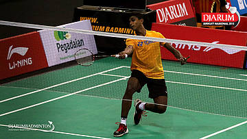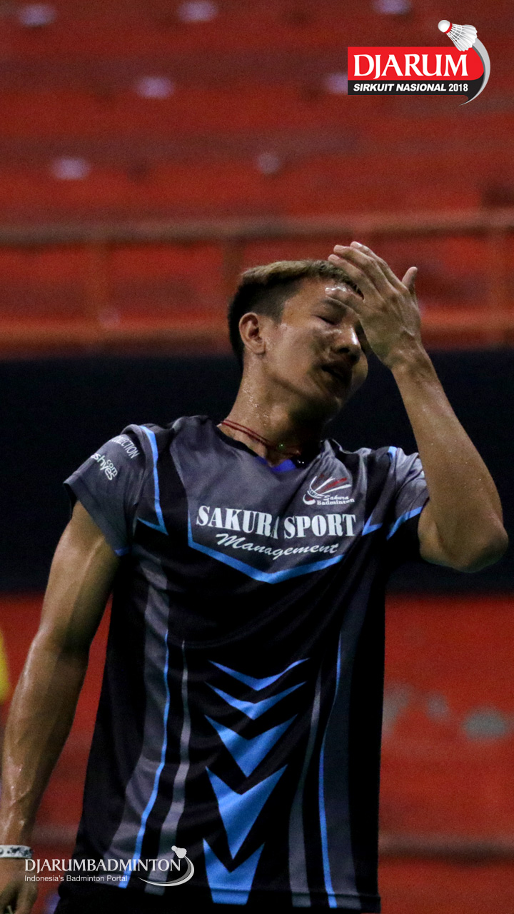 Ekspresi kekecewaan Isna Sakti Maulana Mustaqim (Sakura Badminton)
