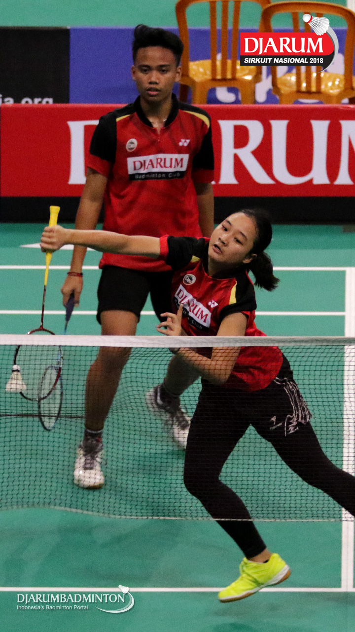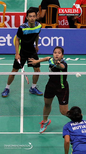 I Kadek Pande Dheva Brahmantya Putra/Sintia Dewi Yuliani (PB Djarum Kudus) menghadang pengembalian