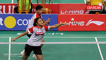 I Kadek Pande Dheva Brahmantya Putra/Sintia Dewi Yuliani (PB Djarum Kudus) gagal melepaskan serangan