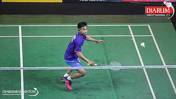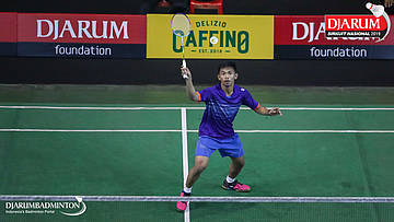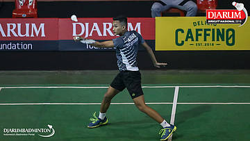 Ardian Rachmat Suatkab (PB AIC Badminton Academy) menyambut shuttlecock