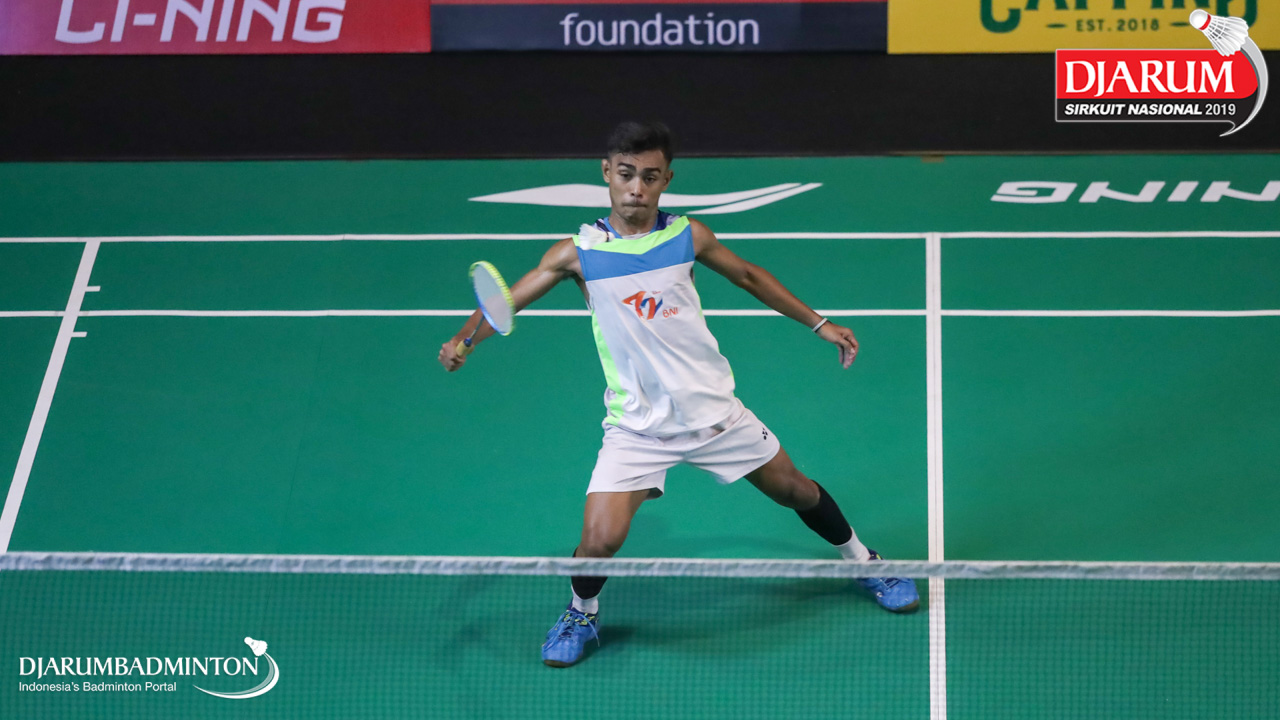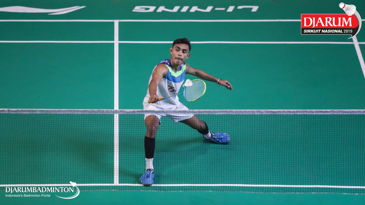 Ahmad Raihan Ishak (PB Victory Bogor, Jaktim) mengembalikan shuttlecock